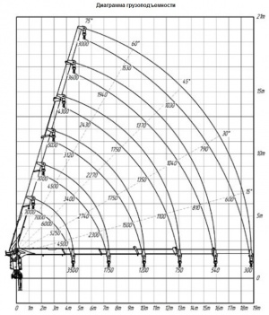 Грузоподъемность 8,8-9,37 тонн. Вылет стрелы 6,15-19,1 метров